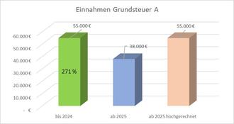 Für eine Sicherstellung der geplanten Steuereinnahmen ist eine Hebesatzerhöhung der Grundsteuer A von 271 v.H. auf 400 v.H. erforderlich.