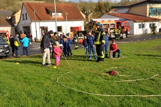 Wer an jeder Station fleißig einen Stempel gesammelt hat, durfte sich am Ende sein wohlverdientes Osternest abholen - natürlich passend zum Thema: ein alter Feuerwehrschlauch, der in liebevoller Handarbeit von den Kameraden und Eltern zum Osterküken umgestaltet und befüllt wurde.