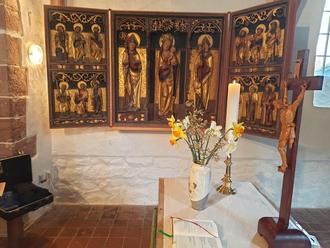Älteste aus unseren Kirchengemeinden Gerstungen, Neustädt, Sallmannshausen und Untersuhl haben unsere Kirchen für die Gottesdienste an Ostern und die offenen Kirchen mühevoll geputzt, liebevoll geschmückt und die Zugänge gereinigt. Auch in Sallmannshausen versammelte sich vor dem Marienaltar die christliche Gemeinde am Karfreitag und an Ostern.