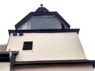 Auflage erfüllt: Spezialfirma bringt Nistkästen am Kirchturm Erlöserkirche Neustädt an
