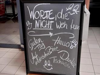 Auf der Kreidetafel vor dem Geschäft ist kein Angebot des Tages zu lesen, sondern eine Bitte um: „Worte, die nicht wehtun“. Ein Gerstunger Filiale wirbt damit seit Wochen für mehr Freundlichkeit und Wertschätzung im Miteinander. Vielen Dank.
