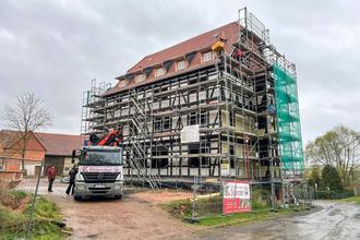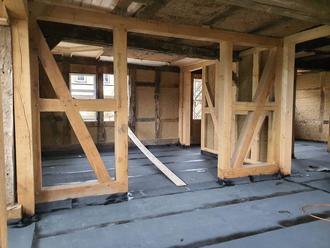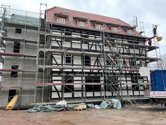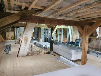 Die umfangreichen Zimmerer- und Rohbauarbeiten sind nun abgeschlossen. Aktuell arbeiten Trockenbauer, Tischler und Putzer im und am einstigen "Witzlebener Hof". In Kürze werden die Haustechniker mit ihren Arbeiten beginnen.