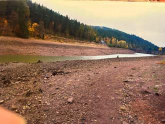 Der Lütschestausee bei Frankenhain wirkt in dieser Jahreszeit etwas trist. Er hat sein Winterstauziel von 10,84 m erreicht. Dadurch sind die verbliebenen Fische natürlich auf engem Raum - bis im Februar durch die Fernwasserversorgung wieder angestaut wird.