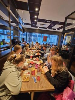 Nach so vielen Eindrücken wird man hungrig. Fast schon traditionell machte sich unsere Gruppe auf den Weg zum nahegelegenen Lieblingsrestaurant der Kinder. Mit mittlerweile routinierten Handgriffen wird die riesige Sammelbestellung aufgegeben und anschließend auf die Fertigstellung gewartet. Die bald einkehrende Ruhe lässt keinen Zweifel - den Kindern schmeckte es.