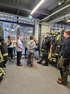 Wir konnten Einblicke in alle wichtigen Räumlichkeiten der Feuerwache erhalten. Angefangen haben wir bei den Sport- und Fitnessräumen, die für das regelmäßige Training der Kameraden genutzt werden. Direkt entdeckten die Kinder die dort befindliche Rutschstange, die die Einsatzkräfte im Einsatzfall schnell zu den Fahrzeugen gelangen lässt.