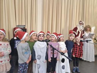 Weihnachtsmann und Engelchen luden die Senioren zum gemeinsamen Singen ein. Dafür lagen auf den Tischen Gesangsbücher aus. Spontan fand sich ein Seniorenchor auf der Bühne ein und es wurden die schönsten, altdeutschen Weihnachtslieder geträllert mit musikalischer Unterstützung vom Udo. Das Weihnachtsengelchen wünschte sich von ganzem Herzen, das Lied- Wir wandern durch den weißen Winterwald. Die Senioren ließen sich nicht lange bitten und erfüllten dem Engelchen den Wunsch. Es war einfach nur Gänsehautfeeling. Nun aber war es endlich an der Zeit für die Geschenke. Im Weihnachtsmannsack waren die kleinen Geschenke und ein großes hatte der Weihnachtsmann noch als Überraschung bereit. Das Engelchen platzte bald vor Neugierde was es denn wohl sei? Der Ortschaftsbürgermeister vertröstete alle und sagte, dass das große Geschenk noch nicht da sei und wir sollten doch alle gemeinsam noch ein Lied singen bis es so weit ist. Während des Singens traf das Geschenk ein und stellte sich vor. Es war unsere neue Ärztin mit ihren Schwestern. Mitte Januar eröffnet Frau Reich ihre Praxis in Geraberg.