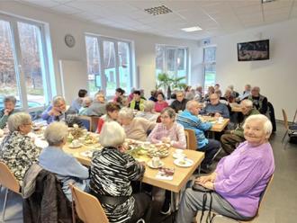 Ein tosender Beifall rauschte durch den Saal. Ja, das ist wirklich ein großes Geschenk und ein wunderbares zugleich. Nun ging der Weihnachtsmann um und verteilte seine kleinen Geschenke und hatte für jeden ein nettes Wort. Das Engelchen indes schnappte sich einfach den Ortsbürgermeister und drehte mit ihm zu Udos toller Musik eine Runde auf dem Tanzparkett. Viel zu schnell ging dieser kurzweilige, wunderschöne Nachmittag zu Ende. Viele der Senioren wünschten sich mehrere solcher Nachmittage. Eines aber konnte zugesichert werden, dass die Seniorenweihnachtsfeier wieder ein fester Bestandteil in unserem Dorf sein wird. Auch Weihnachtsmann und Engelchen versprachen im nächsten Jahr wiederzukommen, denn so viel Freude, wie in den Augen der Senioren zu sehen war, wollen sie wieder erleben. Allen Helfern an diesem Tag stand die Freude ins Gesicht geschrieben, dass es so ein schöner Nachmittag geworden war. Mit sehr viel Dankbarkeit verabschiedeten sich die Senioren und gingen wieder in ihr zu Hause zurück mit der Freude im Herzen, im nächsten Jahr wieder mit dabei zu sein. Danke, danke noch einmal an alle fleißigen Helfer, die diesen Nachmittag so schön mitgestaltet hatten. Herzlichen Dank auch an die AWO, die die kleinen Geschenke für den Weihnachtsmannsack gesponsert hatte und an die Bäckerei Schneider für die leckeren Stollen.