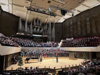 Vereint sangen alle 15 Chöre von der Bühne und der Empore die Lieder "In dulci jubilo", "Leise rieselt der Schnee" und „Am Weihnachtsbaum die Lichter brennen“. Dieser Auftritt in diesem weltweit renommierten Konzerthaus wird sicher nicht nur den älteren Sängerinnen und Sängern in Erinnerung bleiben, auch die Kinder werden sich sicher noch nach Jahrzehnten stolz daran erinnern.