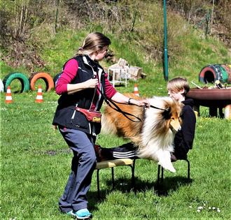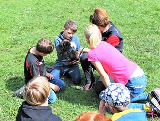 Zum Schluss des Seminars stattete die kleine Rauhhaarteckelhündin „Jara" den Kindern noch einen Besuch ab, bevor alle Kinder stolz ihre Urkunden und Medaillen mit nach Hause nehmen konnten.
