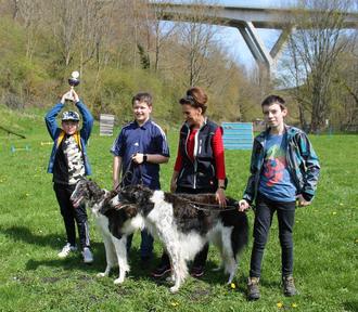 Somit starteten sieben Kinderteams mit jeweils einem Hundeführer und Hund zum Kinderlauf-Parcours. Mit „Taira", „Luna I", „Don", „Dell', „Luna II" und „Uliana" ging das Rennen los und am Ende konnte das Windhundteam den Sieg für sich erlaufen. Zum Schluss durften auch die Klassenlehrerin und einige Eltern ihre Sportlichkeit mit den Hunden „Luna" und „Esnaja" unter Beweis stellen.