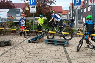 Einige Mitglieder unserer Fahrrad-Trial-Jugendgruppe zeigten ihr Können auf den Rädern zur Unterhaltung der Gäste und Starter.