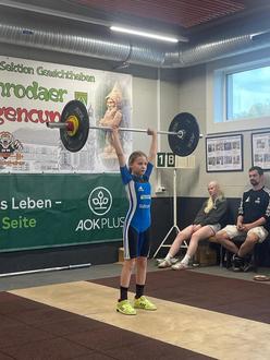 Bei den jüngsten Mädchen im Jahrgang 2018 hatte Magdalena Löhn mit 6 gültigen Versuchen und jeweils 7 kg im Reißen und Stoßen eine tolle Premiere und gewann gleich Silber in ihrem Jahrgang.