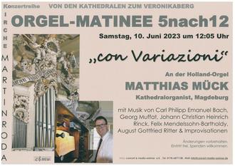 | 12:00 | Martinroda | Orgelmatinee | Matthias Mück |