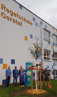 Bis dahin werden wir den Baum hegen und pflegen. Bereits beim Einpflanzen haben sich die Schüler unserer Schülerfirma besonders eingebracht. Sie wurden durch den Hausmeister und die Gemeinde unterstützt, die gute Erde zur Verfügung stellte. Neben den genannten Beteiligten möchten wir uns ganz besonders beim Förderverein bedanken, der durch die großzügige Finanzierung der Pflanze mit starken Wurzelballen im Wert von 400 Euro die Aktion überhaupt erst ermöglichte.