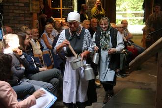 Schon beim Betreten der Braunsteinmühle wurde man von früheren Bergswerksleuten und Ihren Frauen in historischen Kostümen begrüßt.
