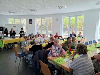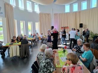 Viele, aber noch nicht genug, um kostendeckend zu arbeiten, kamen ins Mehrgenerationshaus zum Tanztee. Ab 14.30 Uhr konnten die ersten Besucher begrüßt werden. Ein Ah und Oh hörte man von den Gästen, als sie den schön frühlingshaft dekorierten Saal betraten.