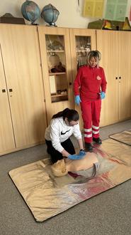 In 2 x 45 Minuten übten die Teilnehmer unter Anleitung von Frau Hoyme des ASB Kreisverband Arnstadt e.V. aktiv die Führungsrolle zu übernehmen und erweiterte Maßnahmen der Reanimation durchzuführen.