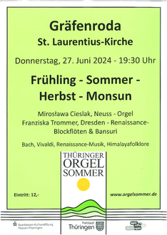 | 19:30 Uhr | Gräfenroda, Orgelsommer Konzert |