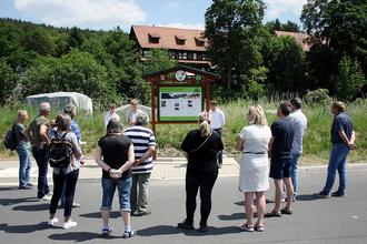 Zur Umsetzung ihrer Idee fanden sie bei Bürgermeister Dominik Straube offene Ohren. Wie im letzten Jahr (Schulprojekt „Zeitgeschichte Schneekopf“ durch Linus Lanua und Richard Heyer) unterstützte die Gemeinde Geratal mit finanziellen Mitteln. Mitarbeiter des Bauhofes sowie Mitarbeiterinnen der Bauverwaltung und der Pressestelle der Gemeindeverwaltung Geratal standen den Schülern fachmännisch und fachkundig zur Seite. Selbst der anfangs von den Schülern gewünschte Aufstellort an der „Buswendeschleife“ am Dörrberg im OT Gräfenroda konnte noch rechtzeitig bis zur mündlichen Verteidigung am 13. Juni realisiert werden.