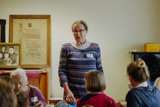 Historiker Winfried Bollmann - er hat vor vielen Jahren an der Aufarbeitung der Geschichte Geschwendas mitgewirkt - gab einen kurzen Überblick über das Geschwendaer Gut und seine Besitzer.