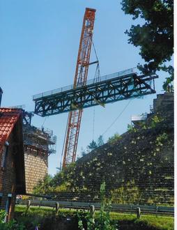 Im Juli 2013 wird das erste überholte Segment wieder auf den Pfeilern montiert.
