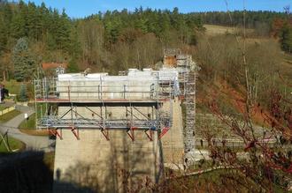 Die Eisenbahn erfüllte die erhofften wirtschaftlichen und sozialen Interessen. Mit der stürmischen Entwicklung der Technik kamen immer schwerere Loks und Wagen auf die Strecke. So wurden eine Verstärkung des Gleisoberbaues und Brückenkonstruktion erforderlich. 1905 begannen die Arbeiten zur Versteifung der Brückenpfeiler. Das Stahlfachwerk schalte man mit Brettern ein und verfüllte es mit Beton. So stehen sie heute noch. Einen Schienenersatzverkehr gab es damals nicht und so musste bei laufendem Verkehr gearbeitet werden. Klugerweise rückte man die Bogenbrücke nach außen und erreichte bei einem nun größeren Radius die Möglichkeit größerer Überfahrgeschwindigkeiten.