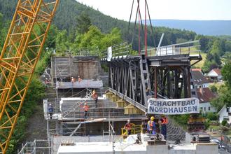 Am 17.07.2013 war es soweit, mit Freude einiger Fans und Bürgern wird das erste Segment 23m hoch über Angelroda auf seinem Platz montiert. Die restlichen Montagearbeiten verliefen nach Plan.