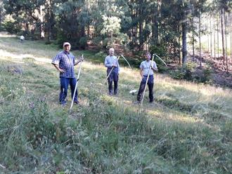 Drei Vereinsmitgleider hatten sich am Samstagmorgen um 5 Uhr auf den Weg nach Stützerbach gemacht, um beim traditionellen Mähen der Bielerswiese mitzuwirken (siehe Pressebericht der FW vom 17. Juli 2023). Und weil Sie davon noch lange nicht genug hatten wurde die Idee geboren, auch auf den heimischen Wiesen weiterzumachen.