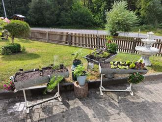 Vielen Dank an die „Spender“ der Gefäße und Pflanzen sei an dieser Stelle auch noch einmal ausgerichtet! Sollten noch Jemand weitere Gefäße (Zinkwannen) für uns übrig haben, so würden wir uns darüber freuen und das Gärtchen gerne noch erweitern.