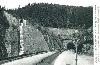 Historisch mussten nach der ersten Reichsgründung 1871 die „Südstaaten“ Bayern und Württemberg an die Preußische Hauptstadt Berlin angebunden werden. Dies ging nur mit einer direkten Eisenbahnverbindung. Das Bergmassiv des Thüringer Waldes stellte das größte Hindernis dar. Um dies zu überwinden, war ein Tunnel die effektivste Lösung. Mit der Entscheidung dem Tal der Wilden Gera zu folgen, sollte dieser unter dem Bergrücken der Brandleite gegraben werden, was dem Tunnel seinen Namen gab. Beiderseitig war ein Bahnhof erforderlich. So kamen die Orte Oberhof und Gehlberg zu ihrem Bahnhof obwohl sie weit weg und hoch oben liegen. Nach umfangreicher Vorbereitung begannen 1881 die Tunnelarbeiten. Durch Sprengung wurde das gelockerte Gestein über Feldbahnloren nach draußen befördert. Täglich kam man 3 bis 4 m in den Berg hinein. Es ist heute unvorstellbar unter welcher Schinderei die Tunnelarbeiter arbeiten mussten, nur durch Rüböllampen der Arbeitsbereich etwas erhellt. Bei ständiger Nässe, Kälte und schlechter Luft waren Krankheiten wie Typhus und Verletzungen allgegenwärtig. Ein Sprengunfall am 7. August 1881 forderte 4 Tode und viele Schwerverletzte. Etwa 100 Bergmänner starben an Typhus. Aber das Werk fand ein für die Region glückliches Ende. Im Februar 1883 erfolgte der Tunneldurchstoß mit einer Genauigkeit, die uns heute nur staunen lässt. Ab dem 1. August 1884 war mit dem Tunnel der durchgehende Verkehr von Dietendorf (Neudietendorf) nach Ritschenhausen- Bayrische Grenze eröffnet. Nach dem zweigleisigen Ausbau der Strecke wurde die Bahn die wichtigste Nord -Südverbindung.
