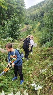 Beim Weg freischneiden vor dem Räuberstieg halfen einige Kinder und Jugendliche