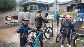 Auch bei strömenden Regen wurde im Bikepark gefahren- hier geht’s mit dem Lift wieder hinauf