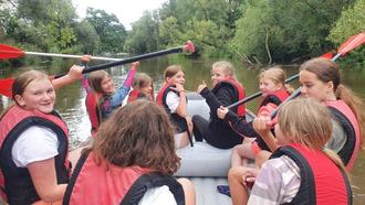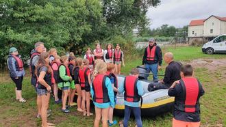 Wir fuhren kurzentschlossen trotz schlechter Wetterprognose an die hessisch –thüringische Grenze, hier konnte man uns spontan helfen, gab uns 2 Schlauchboote und einige Kanus. Auf der Werra entlang an der ehemaligen deutsch- deutschen Grenze hatten wir nicht nur sehr viel Spaß, einige sprangen auch ins kühle Nass.
