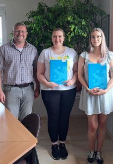 Am Mittwoch, den 31.07.2024, konnte Bürgermeister Dominik Straube den beiden Auszubildenden der Gemeinde Geratal, Yasmin Langenhan und Lisa Reutermann, ihre Abschlusszeugnisse über die erfolgreich absolvierte Ausbildung als Verwaltungsfachangestellte überreichen.
