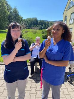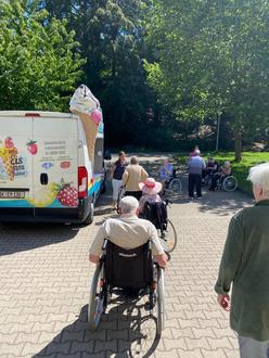 Über diese Besuch freuen sich die Bewohner, Mitarbeiter und Angehörige immer sehr. Vielen Dank an die Eismanukaktur für den spontanen Besuch!