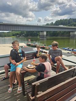 Bogenschießen, eine Mountainbike- Tour, eine ganztägige Kanu oder Kanadier- Fahrt auf dem Stausee, Indoor- Kletterwand oder auch die Sommerrodelbahn in der Nähe, die Ferienwoche war sehr erlebnisreich. Baden, Karten spielen, Beachvolleyball oder auch einfach nur chillen am Lagerfeuer kamen auch nicht zu kurz, so dass die meisten Kinder sehr traurig waren, als Freitag die Heimreise angetreten werden musste.
