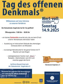 Endlich konnten die Mitgliedsbeiträge für 2025 kassiert und die Planung für das laufende Jahr auf den Weg gebracht werden. Wir greifen auch sofort wieder an; zum Tag des offenen Denkmals laden wir herzlich in die Heimatstuben ein: