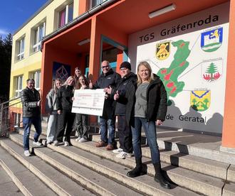 Es wurden insgesamt 3. 126 Runden geschwommen bzw. Bahnen gelaufen. So ist ein Betrag von 7. 300,00 € zusammengekommen. Auch der Erlös des Kuchenbasars von 325,00 € geht als Spende mit ein. Wir möchten uns an dieser Stelle nochmals bei unseren Eltern, den Klassenleitern und der Gemeinde Geratal für ihre Unterstützung bedanken. Am 18.12.2024 haben wir die Spende übergeben.