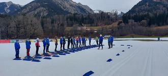 Da im Kleinwalsertal aufgrund des fehlenden Schnnes keine geeigneten Trainingsmöglichkeiten vorhanden waren, wurden die Einheiten in das Nordic Center nach Oberstdorf verlegt. Dort fanden unsere jungen Wintersportler optimale Bedingungen vor. Bei bestem Wetter wurden täglich zwei Trainingseinheiten in der klassischen sowie in der freien Technik durchgeführt. Ergänzend konnten auch alpine Fahrformen und Abfahrten in der Arena trainiert werden.