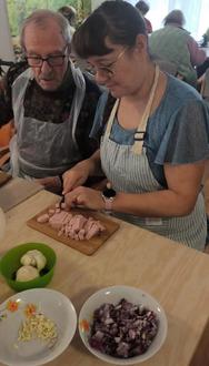 Gemeinsames Kochen gehört zu den regelmäßigen Beschäftigungsangeboten in der Seniorentagespflege Geraberg. Am Donnerstag wurde dabei auch die Chefin eingebunden. Gemeinsam mit den Tagesgästen wurde geschnippelt, gekocht und ein leckerer Wurstgulasch mit Nudeln zubereitet. Dabei erwachten bei den Senioren viele Erinnerungen und es gab angeregte Gespräche.