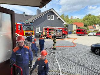 Ein besonderes Highlight war die gemeinsame Ausbildung mit der Einsatzabteilung in Frankenhain. Im Verlauf des Berufsfeuerwehrtages wurden insgesamt sechs Übungseinsätze erfolgreich absolviert. Diese reichten von klassischen Brandeinsätzen über eine Tierrettung bis hin zu einer anspruchsvollen Personensuche.