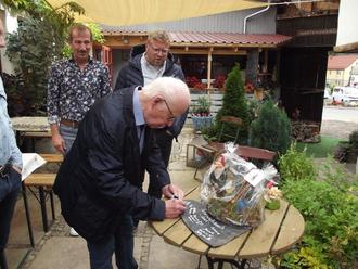 Am 2. Tag die Gräfenrodaer Runde, eine Führung durch die Zwergstatt. Dabei wurde auch ein Präsent aus Zwergen am Rennsteig überreicht. Die nächste hoch interessante Führung in der Laurentiuskirche zu Johann Peter Kellner, Johann Sebastian Bach und Kellner Weise Orgel erläutert Kantor Peter Hader. Auch lässt er die Orgel erklingen. Von der Kirche liefen wir zum Bürgerhaus Deutscher Hof und informierten unsere Gäste zum Stand des Umbaus. Vom Parkplatz vor dem Haus Grevenrot fuhren unsere Gäste wieder nach Hause.