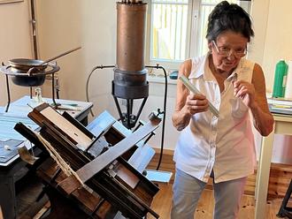 Erläuterungen zur Thermometerherstellung durch Helga Schneider im Deutschen Thermometermuseum