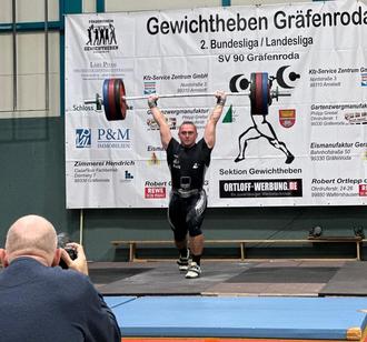 Im Stoßen merkte man Andre Langkabel den Trainingsrückstand deutlich an. Nach 165 kg im ersten gegangen ihm die weiteren Versuche mit 170 kg nicht.