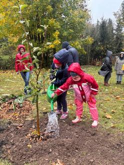 Die diesjährigen Schulanfänger in Frankenhain haben vor wenigen Tagen auf der Streuobstwiese, in Richtung Rumpel, einen weiteren Baum gepflanzt. Diese Streuobstwiese wächst zur Freude aller immer weiter, ein Pflaumenbaum, ein Kirschbaum und zwei Apfelbäume sind bereits hier zu finden. Mit großem Einsatz brachten die Kinder, mit tatkräftiger Unterstützung ihrer Eltern, den 150 Meter großen Apfelbaum in die Erde. Eine Tafel mit den Namen der Kinder, angebracht an einem Pfahl, erinnert sie an diesen besonderen Moment. „Das ist echt cool“, so die einhellige Meinung der Kinder. Mit ihrem Baum haben die Kinder so ein Leben lang eine schöne Verbindung zu ihrem Heimatort. Auch die Eltern zeigten großes Interesse und so mancher versprach, bei Bedarf auch ab und an mit einer Gießkanne voll Wasser hier vorbeizukommen. Bei einer anschließenden gemeinsamen Bastelaktion mit Hotdog und Getränken klang dieser schöne Vormittag aus.