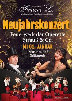 „Prosit Neujahr mit Strauß & Co“ - das leicht beschwipste Neujahrskonzert mit dem Orchester Franz’L. aus Weimar und seinen Solisten Alenka Genzel und Frank Matthias