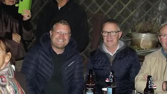In der Braunsteinmühle Geraberg kommen die Gäste aus dem Kirner Land dazu. Beim Besuch im Museum und im Mühlen-Café gab es viel zu entdecken. Zurück in die Unterkunft – eine kleine Pause – weiter in das Bürgerhaus „Deutscher Hof“. Bei guter Musik durch das Linus-Quintett hielt der Bürgermeister Dominik Straube, mittels PowerPoint, einen hochinteressanten Vortrag mit sehr vielen Details zur Geschichte des Hauses, zu den viel Gelebtem im Haus, zu den vielen Umbauten und Neubauten. Der Bürgermeister der Verbandsgemeinde Kirner Land, Thomas Jung, hatte mit seiner Delegation zur Einweihung zwei Fass Kirner Bier mitgebracht. Nach weiteren Grußworten gab es eine köstliche Stärkung. Bei guter Unterhaltung mit dem Linus-Quintett lief der Auftakt zum Festwochenende weiter.