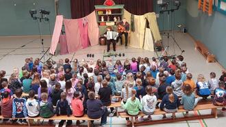 Das Grundschulteam dankt den beiden Theaterkünstlern des „Erfreuliches TheatErfurt“ und dem Lokalen Aktionsplan gegen Rechtsextremismus des Ilm-Kreises sehr herzlich für die Ermöglichung eines kostenfreien Theaterbesuches in unserer Turnhalle.