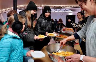 Im Waldbad angekommen, wurden die Gäste mit einem liebevoll vorbereiteten Angebot an Speis und Trank empfangen. Für die Erwachsenen gab es Bratwürste, Brätel und wärmenden Glühwein, die perfekt zur herbstlichen Abendstimmung passten. Die Kinder wurden kostenlos mit allem versorgt, was das Herz begehrt: Pommes, Dino-Schnitzel, Nuggets, Wiener Würstchen, hausgemachte Pizza, Vanille- und Schokopudding sowie rote und grüne Grütze ließen keine Wünsche offen.