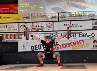 Nils lag nach 75 und 79 kg im Reißen zunächst auf Rang 5. Im Stoßen gelang es ihm mit 104 kg den vierten Platz zu erkämpfen. Jetzt wurde nachdem der dritte Jost aus Tuttlingen bei 105 kg ausstieg auf 114 gesteigert was eine Medaille bedeuten würde. Zweimal setzte Nils die Last um, aber konnte sie nicht gültig ausstoßen was wiederum Platz 4 für ihn bedeutete.
